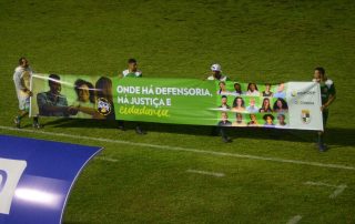 Jogadores do Lagarto entram em campo com faixa de apoio a campanha “Onde há Defensoria, há justiça e cidadania”