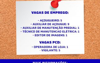 As oportunidades de emprego são para ensino médio, fundamental e técnico O Núcleo de Apoio ao Trabalho (NAT) divulga as oportunidades de emprego que foram direcionadas à instituição nesta semana. São três oportunidades de trabalho em diversas áreas. As vagas são para açougueiro (5), [...]