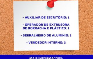 Interessados nas oportunidades de trabalho devem entrar em contato com a instituição por telefone O Núcleo de Apoio ao Trabalho (NAT) divulga as vagas de emprego que foram direcionadas à instituição nesta semana. São cinco oportunidades de trabalho em diversas áreas. As oportunidades são [...]